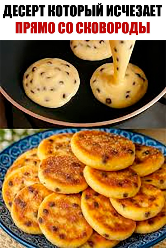 💡 Совет: выкладывайте тесто ложкой — панкейки получатся пышными и аккуратными, а шоколад останется внутри мягким и тягучим.
