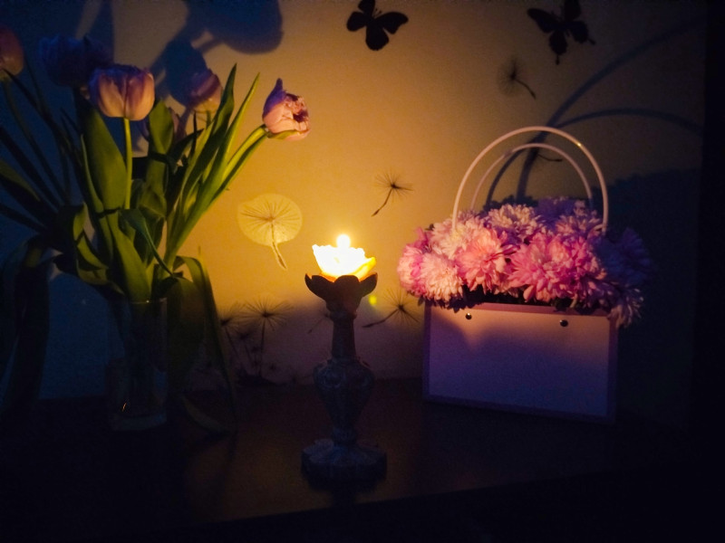 Отбрасывает тень букет тюльпанов.
