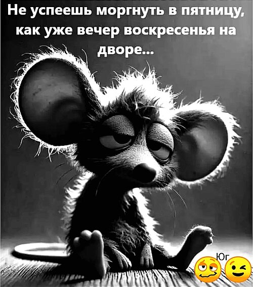 # Да ладно тебе, всего то пять дней, зато потом выходных два подряд smile1_rt_40.png а представляешь, было бы наоборот, пять выходных, а суббота с воскресеньем рабочие, во где засада, скучищаааа