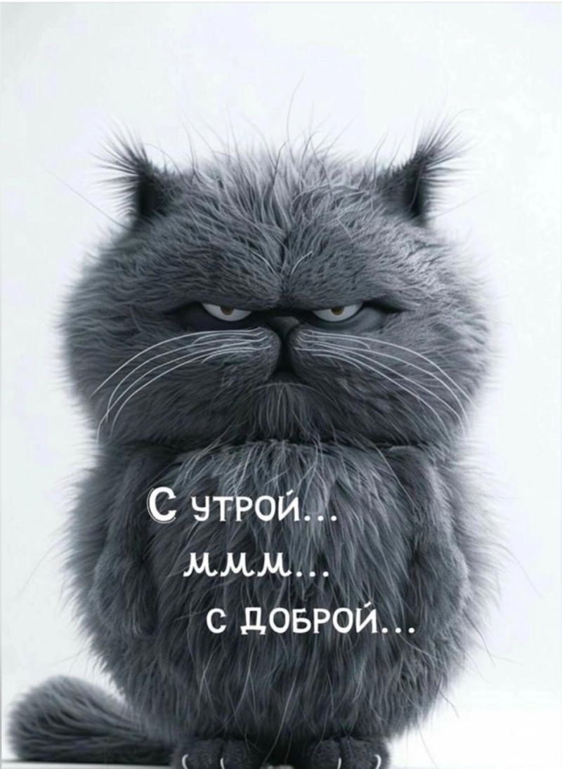 # Доброе утро,а если серого котика на ручки взять и погладить может не будет такой смурной))))