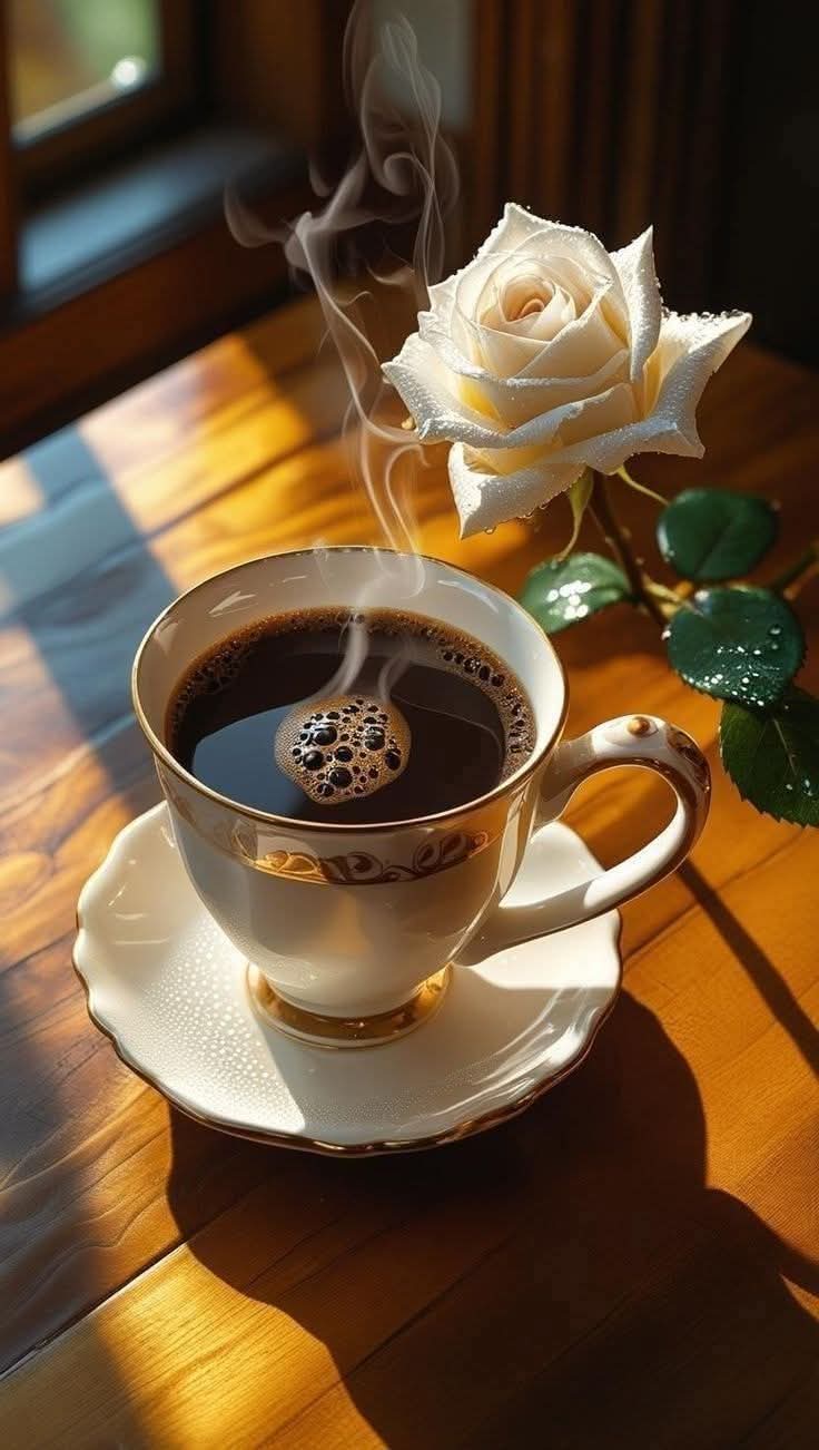 Доброе утро! Спасибо. Шикарное сердечко с розами и розочка с кофе. И за юмор. Подняли настроение.