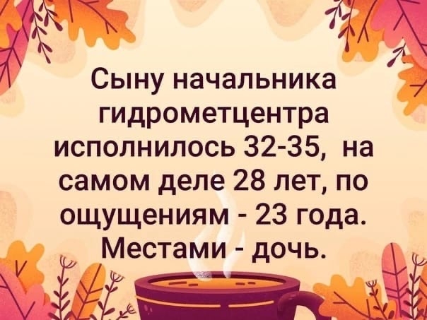Шёл я такой домой с работы,весело так шёл,потому как молодец ☝а вокруг девочки ходют,злые ходют...думаю ,как такое может быть,присмотрелся,а это не девочки а тёти☝и вот задумался я☝,бывают такие моменты,думаю,так как есть чем думать,и всё потому что головой не стучусь..и так задумался,что не заметил что поужинал( придётся ещё раз)и понял ☝погода плохая и-за тёть ☝так как читаю коментарии,а там тёти часто злые,явно весна влияет,так мало что весна,так некоторые каши поедят,и бегут головой стучаться,а за тем держаться за неё...вот вопрос..тёти,вы чего таки злые,а...сколько вы погоду будете колошматит...лозунг вечера...УСПОКОЙ ТЁТЮ,ПОЛУЧИ ПОГОДУ...