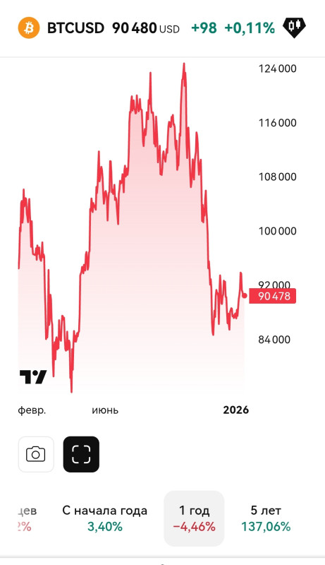 Мы смотрели в техническом анализе график биткоина за несколько лет назад. Аналитический вывод примерно таков что ниже 90 000$ он уже не упадёт а расти всё равно будет.