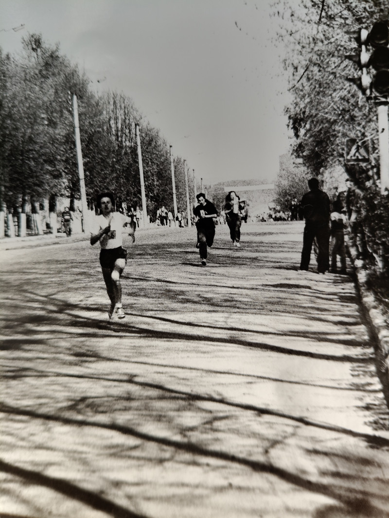 И в этот трудный период тренировки проходили на окраинных улицах, шоссе, в плохую погоду — на Эстакаде, где от случая к случаю разгружали фабричные вагоны, на Буграх (протоптанная тропинка среди посадок вдоль железной дороги) и на внутренней лестнице здания, с первого по верхний этаж...