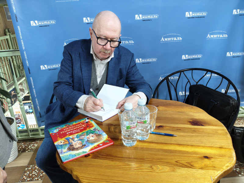 А в пятницу удалось, после работы, увидеть прототипа главного героя этого детского цикла на литературной встрече в воронежском книжном магазине.