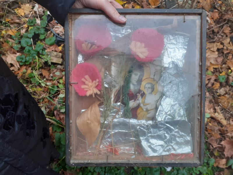 Но в одной из комнат страх становится меньше. К раме окна прислонилась икона: Богородица с младенцем на руках. А там, где наверняка была зАла (комната с двумя окнами, с высоким потолком, узкими двухстворчатыми дверьми, сохранившимися обоями) чувствуется душа дома...