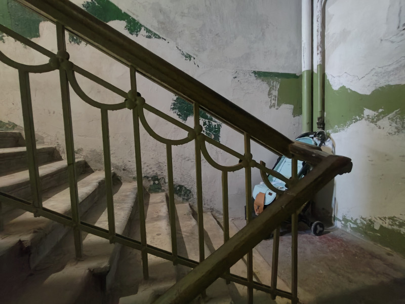 За синей дверью дореволюционного здания скрывается скромная парадная, со скромной, но, наверняка, подлинной лестницей: