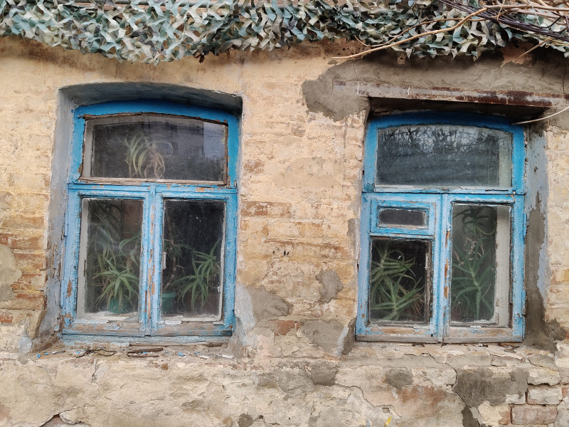 Этот дом практически сгорел, половина его не имеет крыши, но алоэ на подоконнике упорно продолжают расти. Видимо, в этом закуточке дома ещё теплится жизнь: