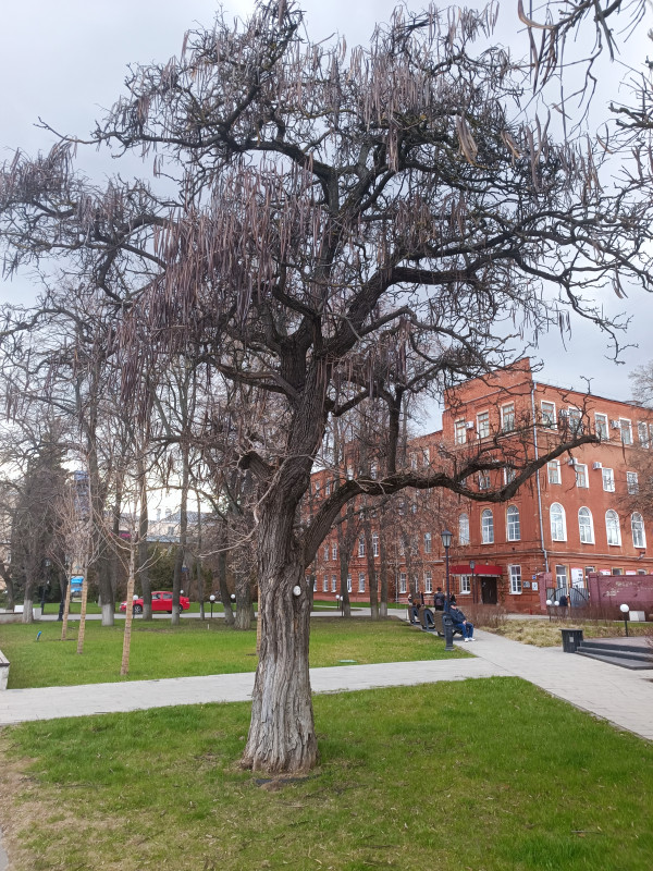 На проспекте Революции. Катальпы долго просыпаются после зимней спячки. В их стволах и ветках нашли приют маленькие странники: