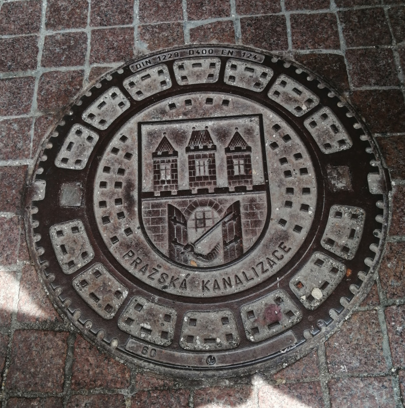 Нашла у себя в альбоме ещё две крышки люков. Мюр и Мерилиз, тоже дореволюционная, - всего два люка встречала на улицах Мск, а Чешская канализация никакого отношения к канализации не имеет, просто крышка.