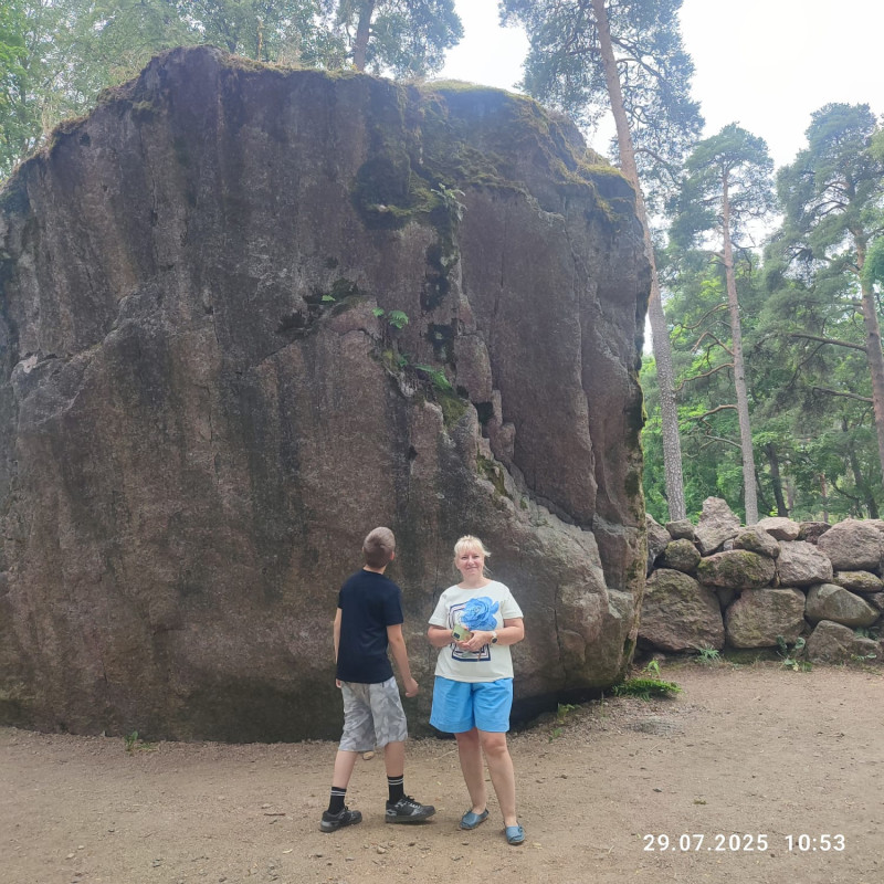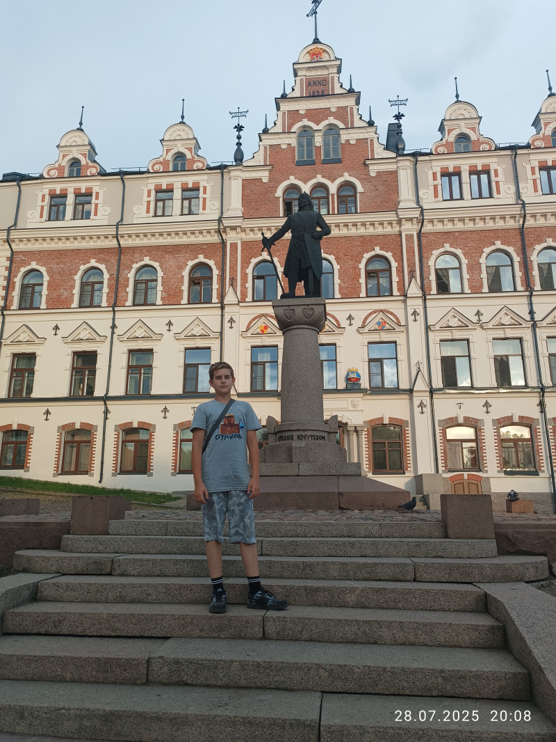 Окунувшись в финском заливе в Репино ,мы продолжили свой путь в старый ,сказочный Выборг. В Выборге я была много раз изучила его в доль и поперек,но последнее мое посещение было лет 15 назад. Как же он изменился ((. Появилось много разрушенных зданий. Хорошо хоть реконструируют .Историческая часть города уже не так малолюдно , Площадь у круглой башни и рынка занята палатками ,которые портят весь вид . Но расскажу по порядку . При въезде в город я уже наметила точку для обеда -пельменную - обед конечно вкусный ,недорогой вышел . После сытного обеда прошлись по красной площади ,где когда то давно кормила голубей как в Венеции)-сейчас это уже другой взгляд на площадь . Далее мы вернулись к машине и отправились к месту ночёвки . Центрическая часть города около круглой башни. Выбирала так, чтобы было всё в шаговой доступности . Машину оставили на парковке у ресторана,, Круглая башня,,. Народу тьма . Оказывается проходил в городе фестиваль . Заселились и пошли гулять по набережной к замку и вернулись по ул крепостная с заходом в соседние улочки . Но как же там было классно некоторым -пиво лилось в каждом кафе )))- как сказано было ,,Рай из пива,, . Заглянув в один проулок,пока внук разглядывал значки и сувениры ,мы решили отведать медовухи . Сидя в подвальчике в прохладе и попивая медовуху был действительно рай. Посмотрели ратушу, дом крестьянина ,замок, рыцарский замок (можно мерить все аксессуары и трогать все что хочется.))-и дети и взрослые были довольны и много других исторических зданий. Было интересно искать и маленькие фигурки ,гномика и лосенка. . Ужинали рядом в кафе-ресторанчике. Возле рынка есть столовая ,мы там решили позавтракать,но меня она не впечатлила совсем . Утром после завтрака мы отправились в парк Монрепо. Гуляли по парку и наслаждались воздухом и видом на залив, на кустарники ,деревья. Очень интересна сосна ,,Лира,, и ещё поразила изгородь из яблони . Из парка мы отправились в Петровский парк ,полюбоваться видом на замок ,и свернуть на местный пляж,чтоб охладиться от жары. Хочу отметить кафе на пляже -очень вкусно готовят и большие порции. А дальше мы решили продолжить путь в Сортавала