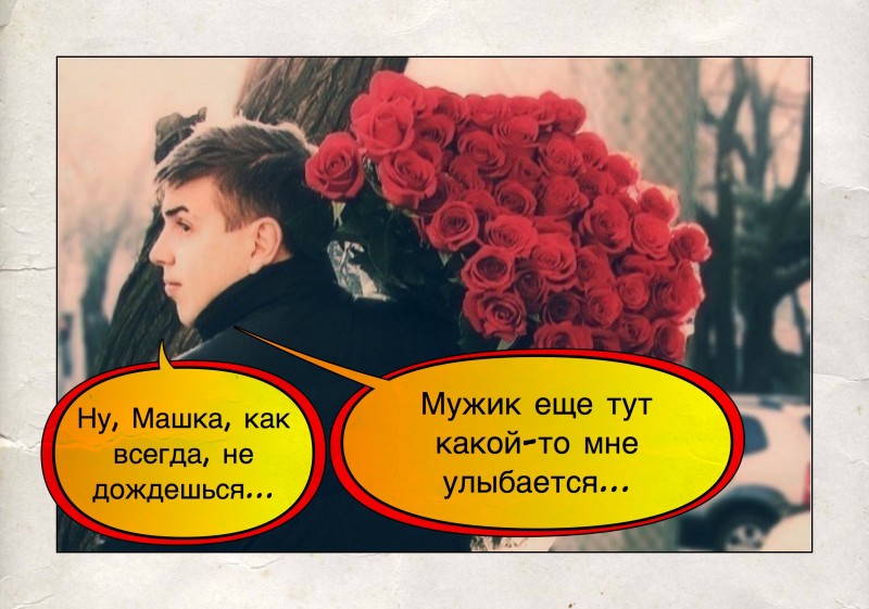 Недавно видел глаза юноши, ждавшего свою девушку в вестибюле Калужского Т Ц. Стоя с огромным букетом роз, вглядывался в мутное стекло раздвижных дверей, пытаясь увидеть, желанный силуэт. Как зажигались его глаза, когда казалось вот она, вот! И как меркли в ошибочном разочаровании. Он даже напоминал мне собаку оставленную и привязанную у входа в магазин, бездушным хозяином, не понимающим какой это стресс для переданного животного.