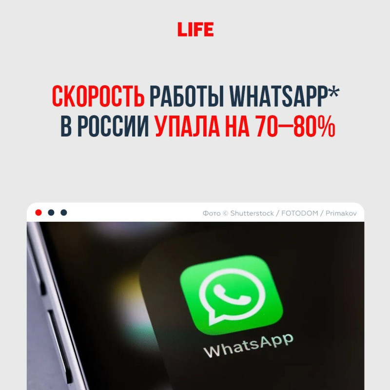 Скорость работы мессенджера WhatsApp* резко сократилась, потери составляют 70–80% с сегодняшнего дня. Об этом СМИ сообщил источник на телекоммуникационном рынке.