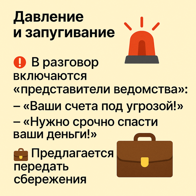 💸 Итог: напуганный человек сам отдаёт свои сбережения в руки аферистов.
