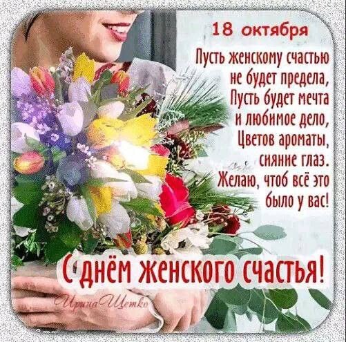 С Днём женского счастья! От всей души желаю, чтобы каждый день приносил Вам вдохновение и ощущение счастья!