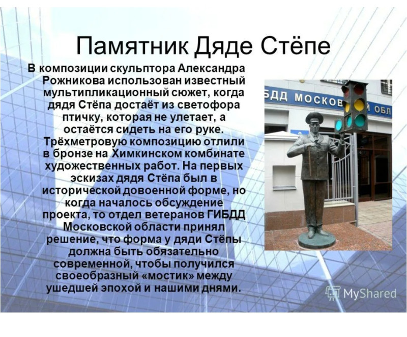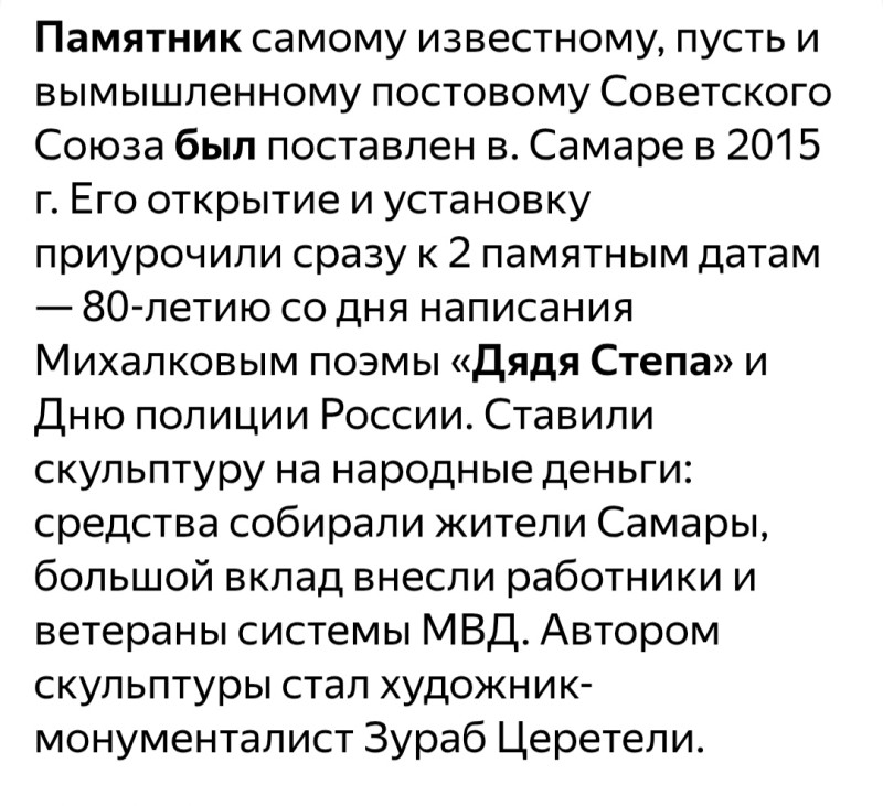 Сколько Вы знаете памятников ( скульптур) посвящённых Дяде Степе из произведения Михалкова?