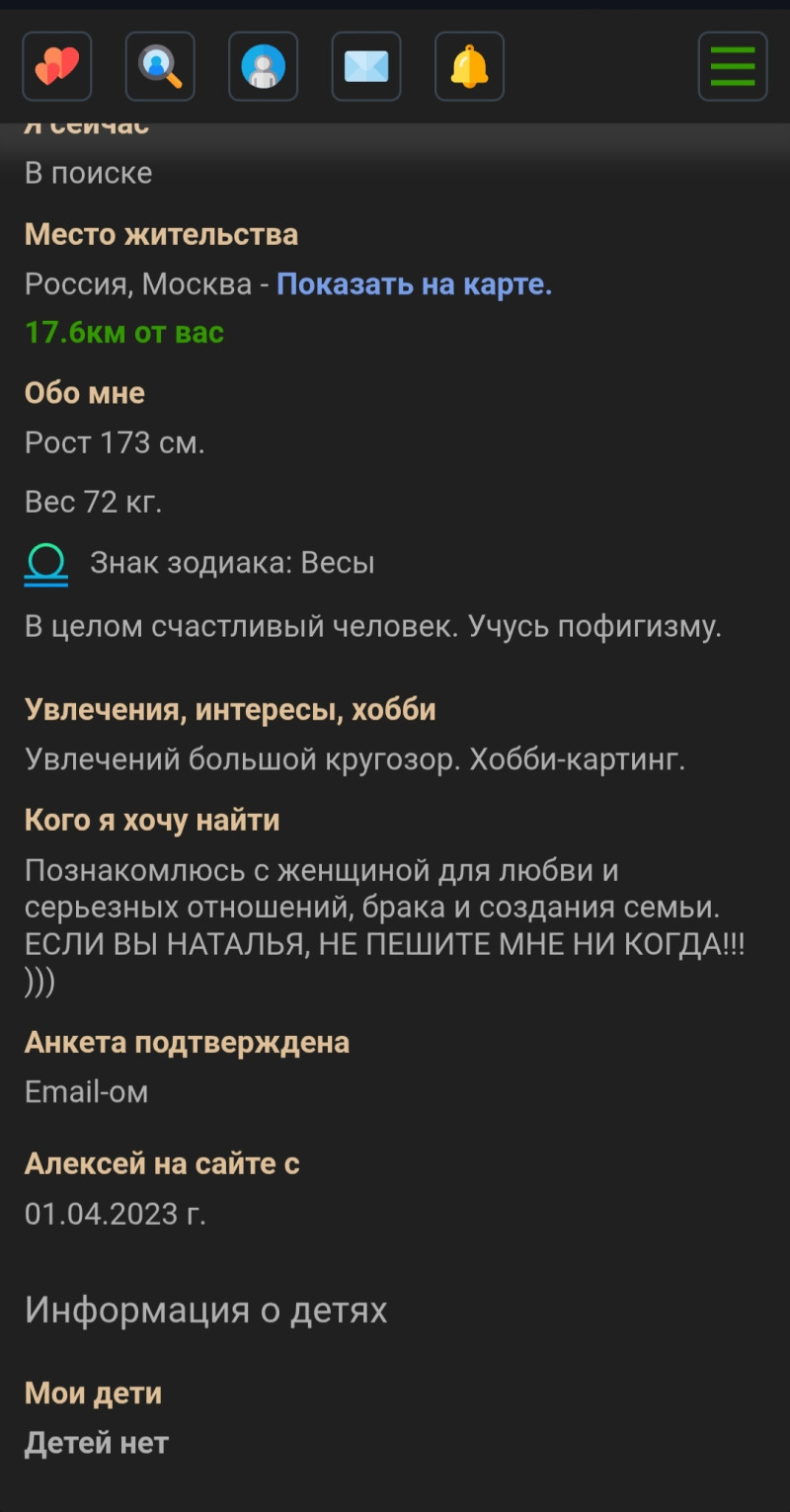 Ой, у меня такое было. Прям мужик взял и переписал себе в анкету мой текст. И не три слова « знакомлюсь для серьёзных отношений», а прям реально авторское моё слово о себе. Я ему сказала об этом, а он типа того ответил, что русские буквы мне не принадлежат.. К- л, в общем