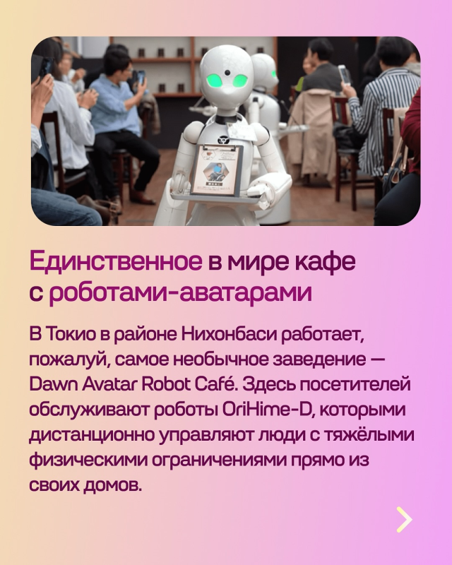 B Токио открылось кафе, где официантами работают не люди, а роботы-аватары, управляемые парализованными сотрудниками из их собственных домов.