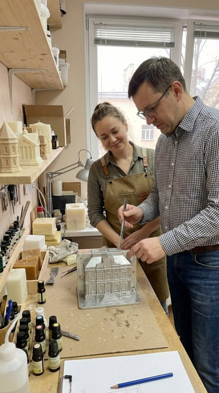 Идея пришла неожиданно: сделать форму для свечи в виде фасада сталинского дома с лепниной, но с современным, дерзким акцентом. Таша перерыла пол-интернета в поисках мастера, который сможет воплотить этот сложный архитектурный эскиз в металле, а не в силиконе. На всех форумах всплывала одна фамилия — Сергей Маузер.