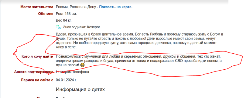 Она искренне считает себя тонкой натурой, глубокой, духовной. Она исключила из своей картины мира всех, кто не соответствует её критериям: — привитые — идут лесом, — поддерживающие СВО — идут лесом, — не верящие в чаек-души — не доросли.