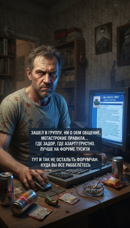 Акт второй: «А куда все разбежались?» Парадоксально, но Иван — главный борец за «живое общение» и одновременно его могильщик. На форуме, где правила есть (но он их терпит, потому что старый, как мамонт), он ноет: