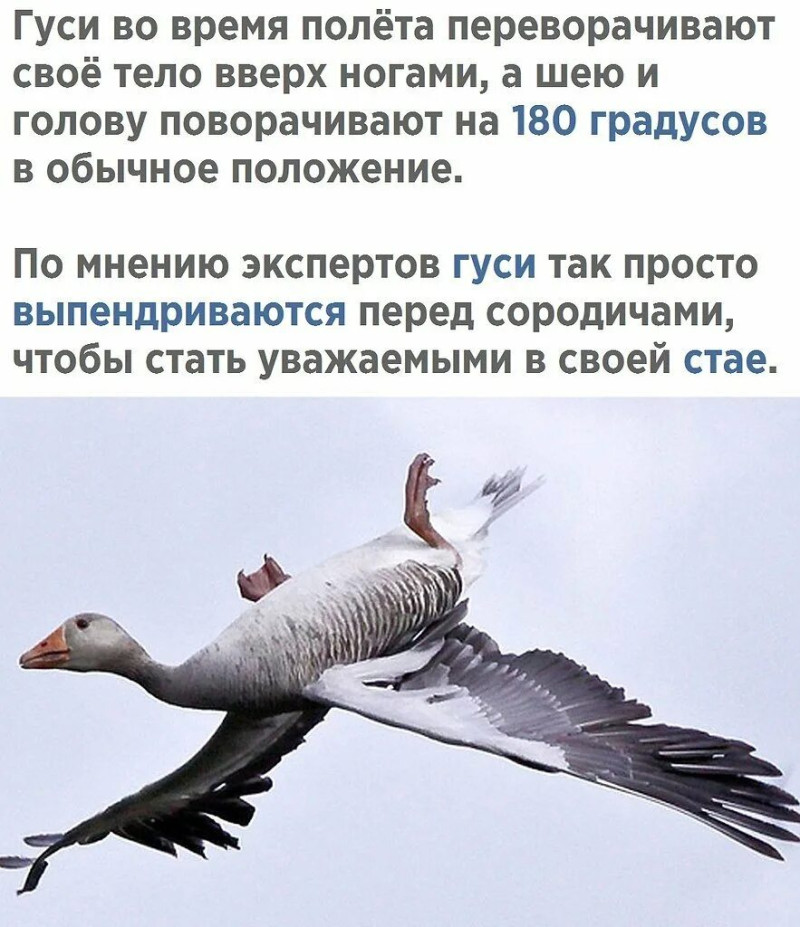 Оказывается, когда гусь машет крыльями, он создаёт подъемную силу для птиц, следующих за ним. Стая гусей может пролететь на 71% дальше, чем одинокая птица. Вот она- сила взаимодействия!))