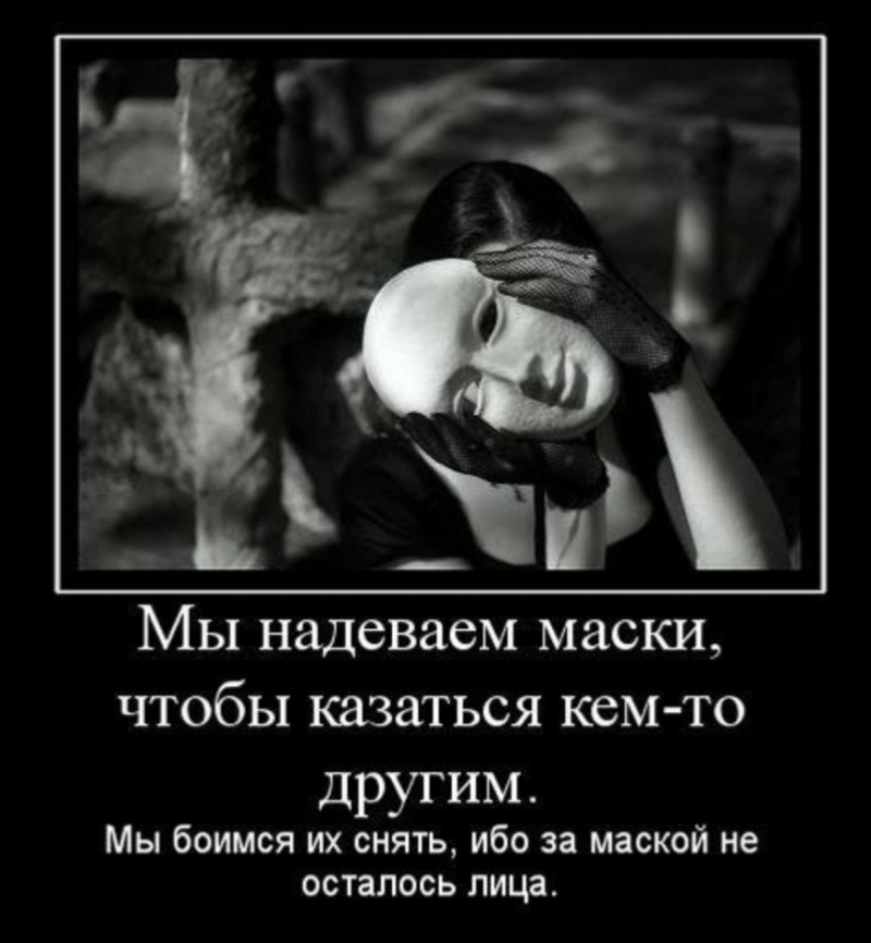 Порой человек уже сам не осознает каков он настоящий. Маски имеют свойство прирастать(