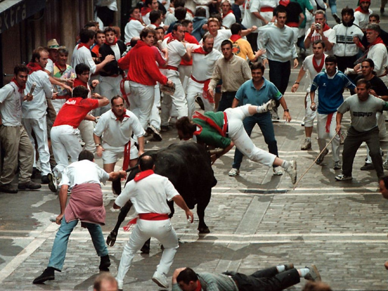 шанс у быка кого-то поднять на рога есть только во время предварительного забега