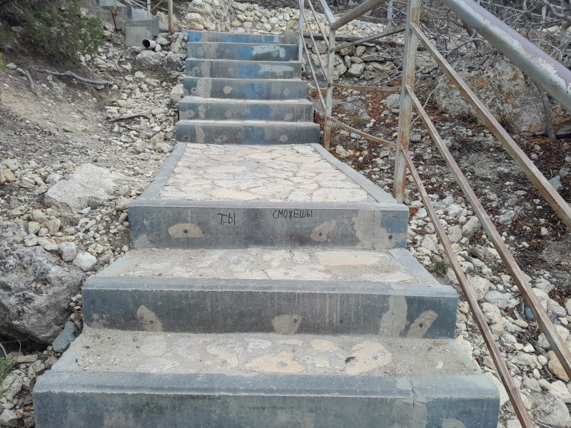 Долгий подъем наверх. Ступенек много и чтобы подняться без остановки требуется хорошая выносливость.