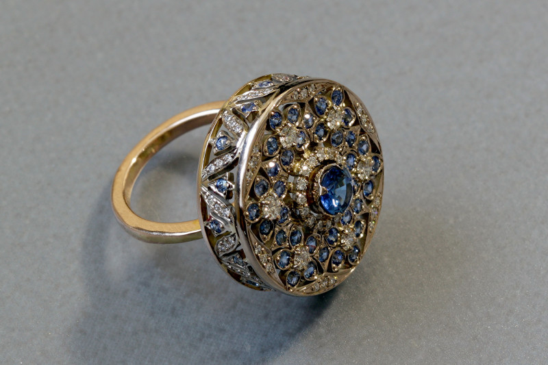 Или перстень с сапфирами и бриллиантами. Сверкают, но дают размытость, нечеткость фото.