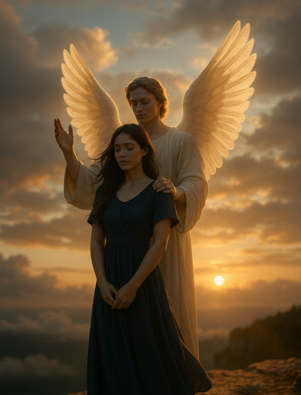 Уставший молодой ангел, сидел на подоконнике квартиры, грустно взирая на молодую женщину, лежащую на диване.