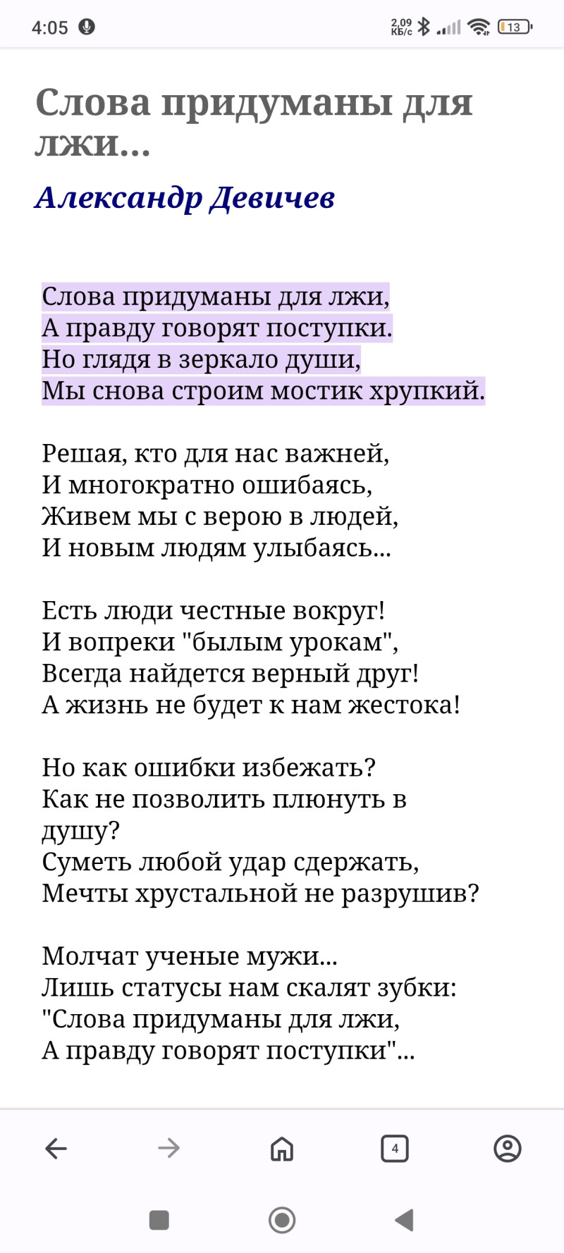 «Слова придуманы для лжи, а правду говорят поступки…»