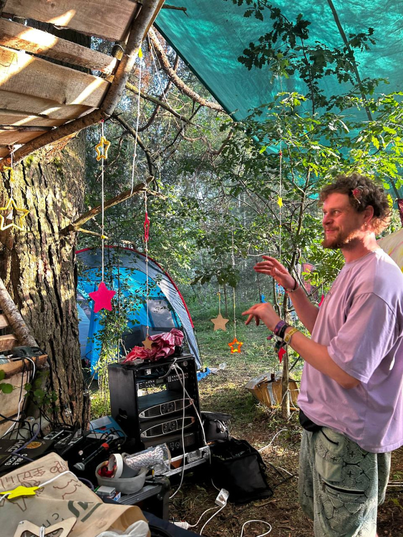 # Мы там с галереей стояли, по вечерам только получалось, в основном, послушать. Но я свою любимую группу поймала, ночью, на красно-желтой сцене. Проснулась под их песню. Радионавтика.
