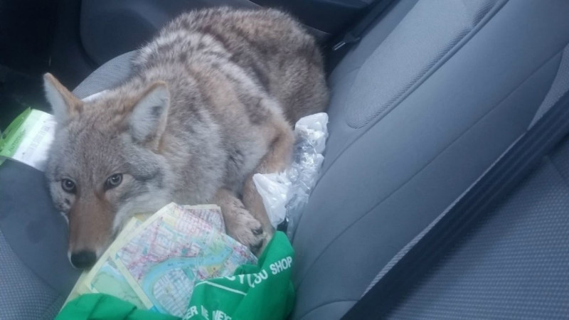 На заднем сиденьи лежит .... ВОЛК. Настоящий. Серый. Матёрый.