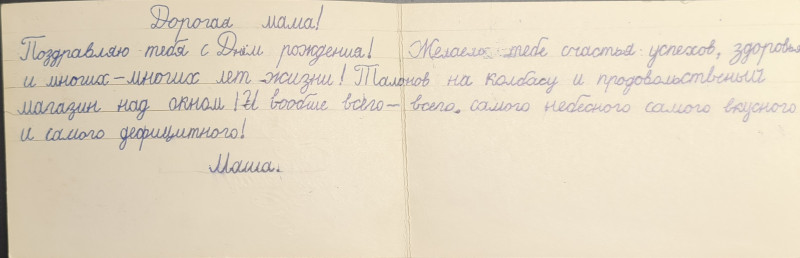 Нашла поздравления дочери. Забавно, что казалось важным в начале девяностых)))