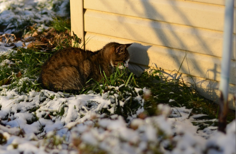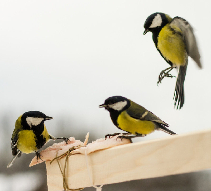 Дятлы прилетают. Недавно смотрю в окно, кто-то сало пытается оторвать. Думала, кот добрался. Оказалось - зеленый дятел резвится