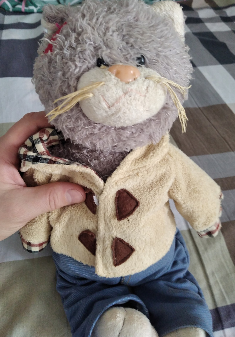 Внимание возможно. Сейчас шить обновки времени нет. Но когда сплю, он с боку. Сидит у подушки.