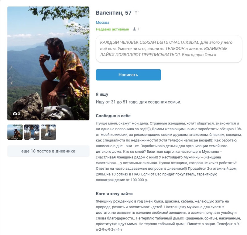 """ И кому такое счастье достанется!?))""" - не льсти себе. Ты никого не интересуешь. Видела тебя на лавлпанет, сидишь ты там лет 10, и все без изменений. В дневниках и везде объявления строчишь о продажах участков с домами. На тематических сайтах размещает объявления о продажах. Тебя забанить следует. Пользуешься чужой площадкой не предназначенной для твоей коммерческой выгоды.