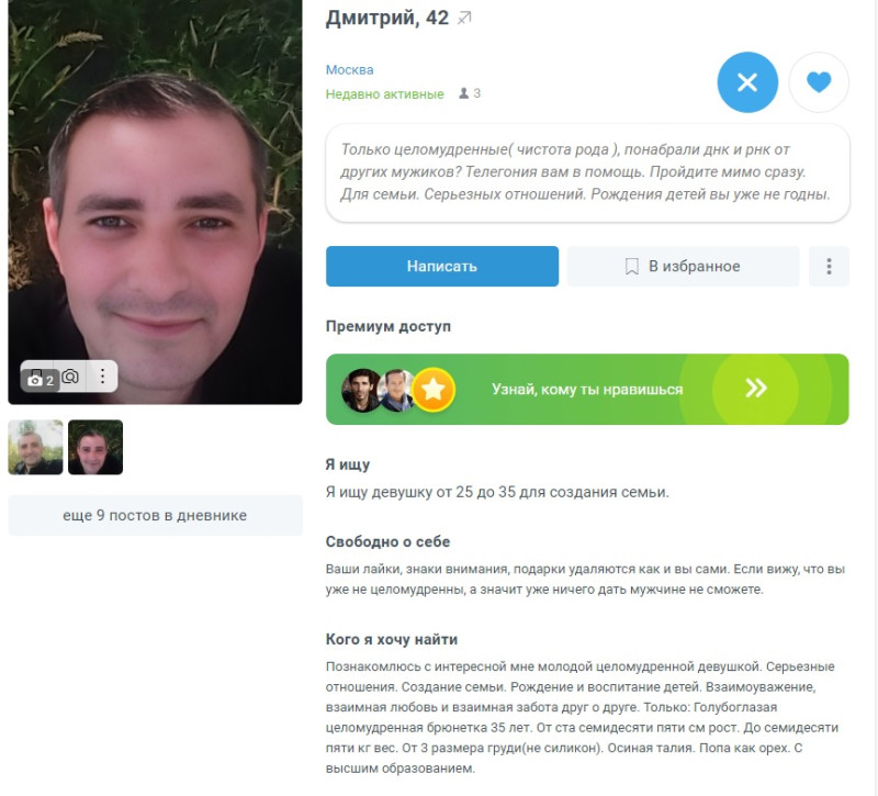 На лавпланет есть такой экземпляр, изрядно потасканный 42 лет, Дмитрий - просто Дмитрий. Интересно кто из наших звезд эстрады больше подходит под описание хотелок этого муд ня?