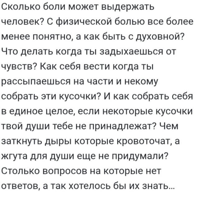 Я знаю, о чем Вы говорите, знаю...((( Говорят, Господь посылает нам только те испытания, которые мы можем выдержать. Но иногда люди не выдерживают и просто сходят с ума.