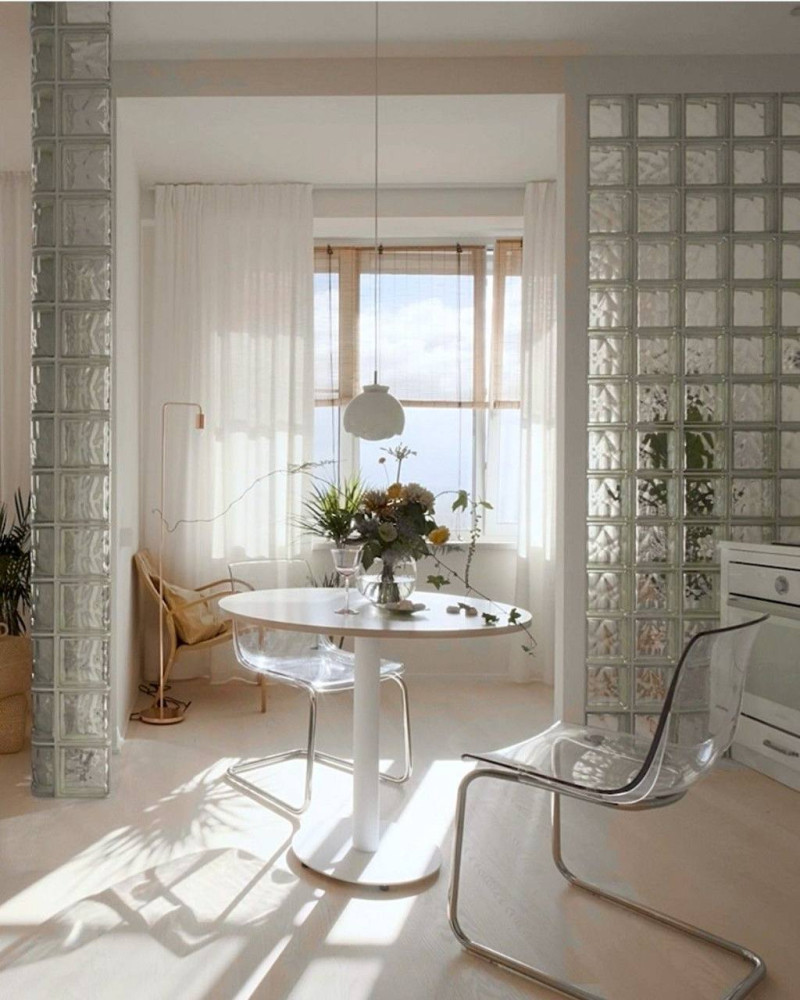 Дану! Как в бане. В Эмиратах в одном отеле видела перегородку из разноцветных блоков между спальней и ванной комнатой. Но там и всё остальное было дорого-богато с восточным размахом. На любителя, короче.