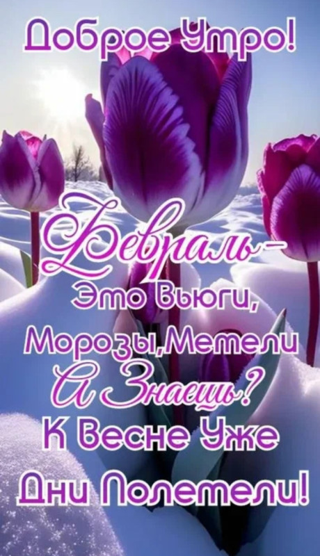 С Добрым утром! Уважаемая Сибирячка, спасибо Вам за Радость! 😊 Не торопись, февраль - морозь, метель, кружи свой танец снежный вволю, да подольше, ведь каждый месяц - это наша жизнь - не будем торопиться видеть зиму в прошлом. Весна придет - придет её черёд, ну а пока давайте наслаждаться тем, что сейчас уже нам жизнь даёт и щедро делится своим богатством.