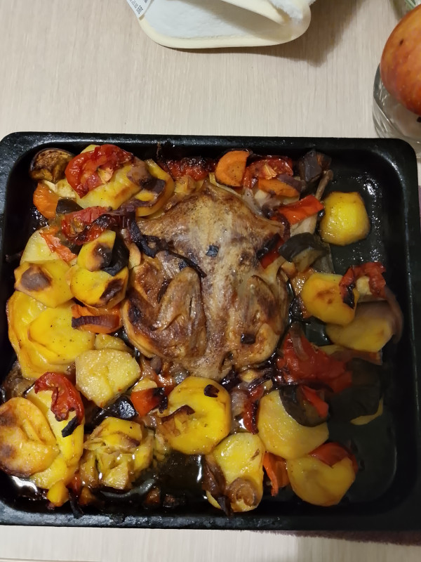 Это блюдо я готовила сегодня. Догадайтесь, какая птица на этом противне.