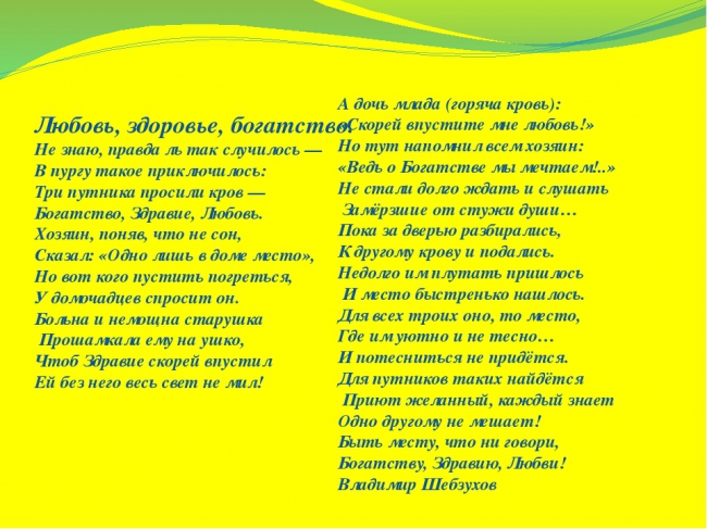 Владимир Шебзухов Притча «Любовь, Здоровье и Богатство»