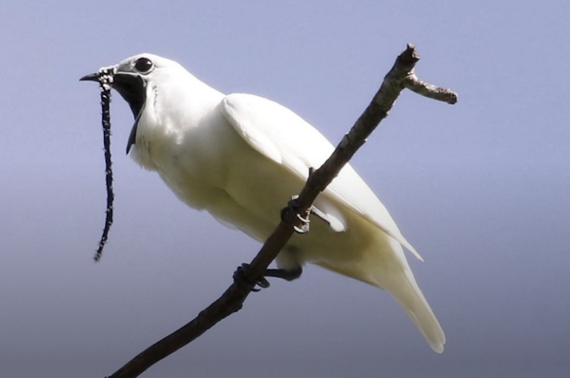Птица звонарь (bellbird). Интересна своим громким голосом и специальным украшением – тонким длинным мясистым выростом, свисающим с клюва у самцов. Результат полового отбора – самкам по каким то причинам такие самцы больше нравятся.