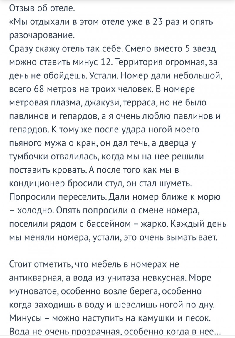 В отзывах претензии в основном именно к людям . Если упростить, люди там г... о Причем здесь знаете вы их или не знаете.