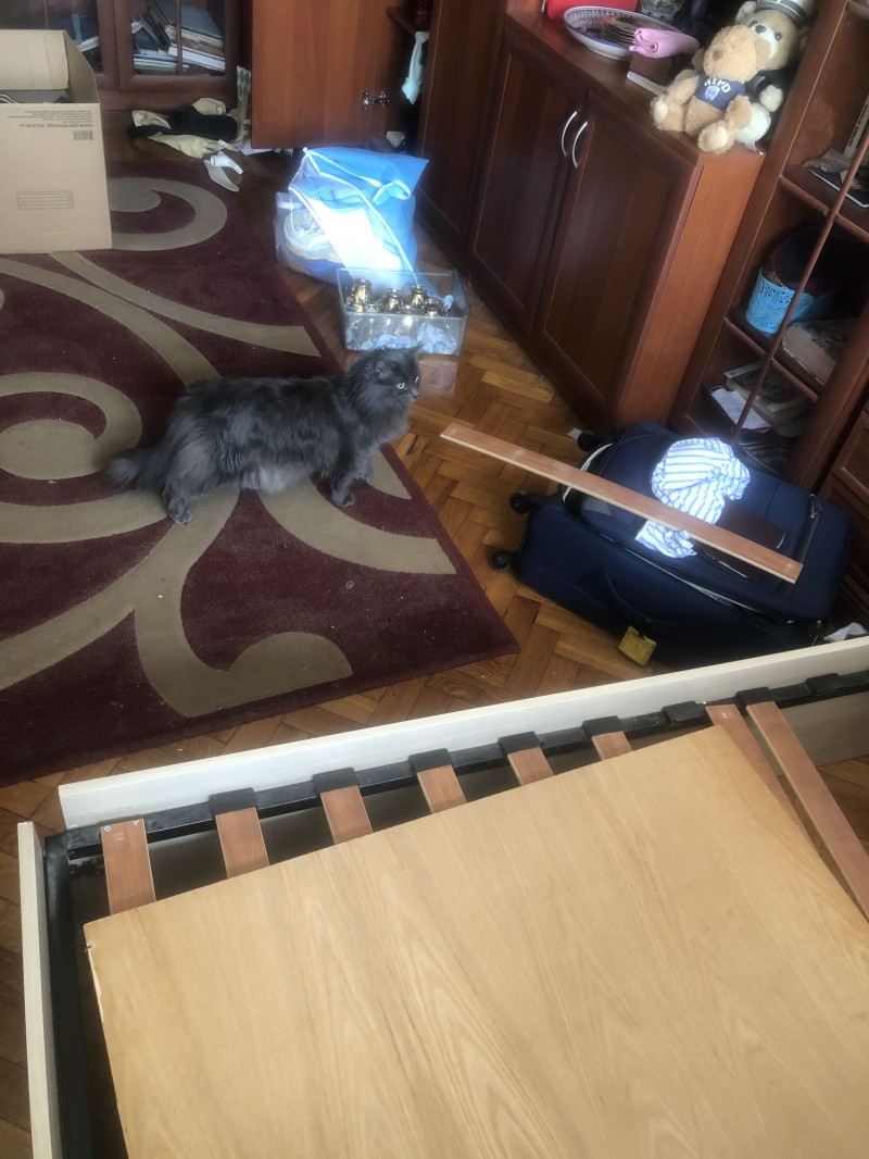 У меня сломалась кровать) Кошка в шоке пришла чинить))