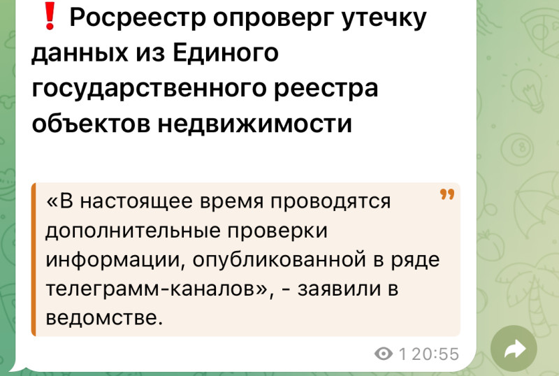 Росреестр взломали, все данные украдены — об этом утверждают хакеры. По их сообщению, украдены данные миллионов россиян, общий размер слива — 1 Тб файлов или 2 млрд строк личных данных. В качестве доказательства утечки хакеры опубликовали часть базы, она содержит: — ФИО; — Адрес эл. почты (401 тыс. уникальных); — Телефон (7,5 млн уникальных); — Адрес; — Паспорт (серия/номер, кем и когда выдан); — Дата рождения; — СНИЛС.