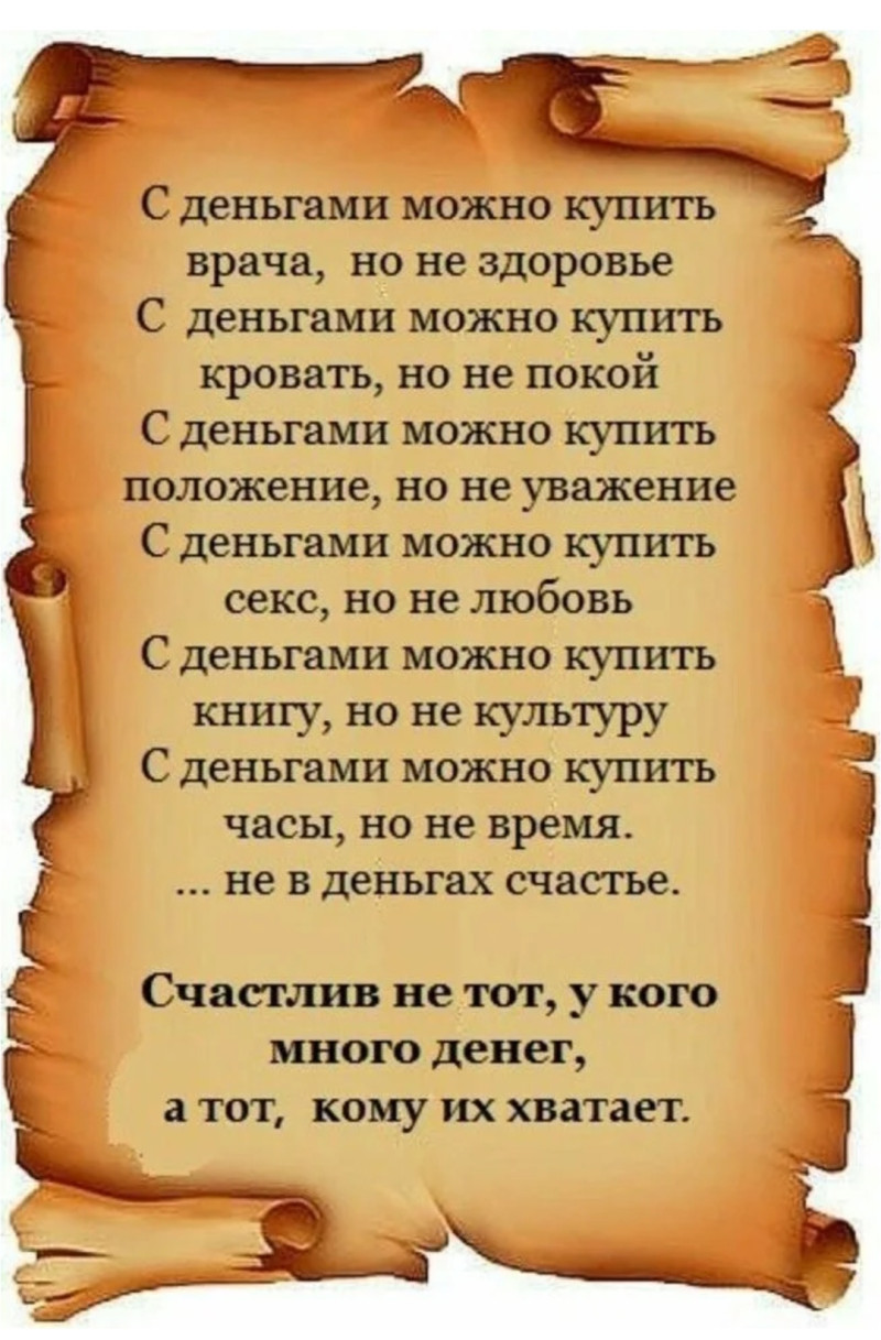 С деньгами не потеряешь здоровье, чтоб идти к врачам. И далее по тексту.