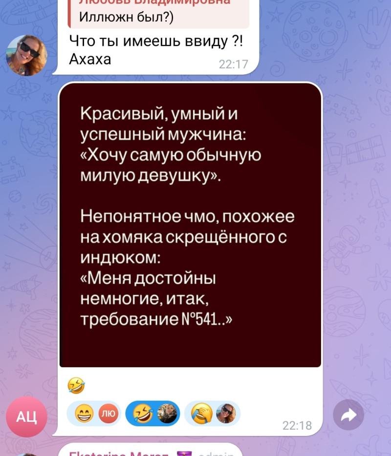 Из чата одной из иоих групп по интересам... Замечу, что это в большинстве 27-39..